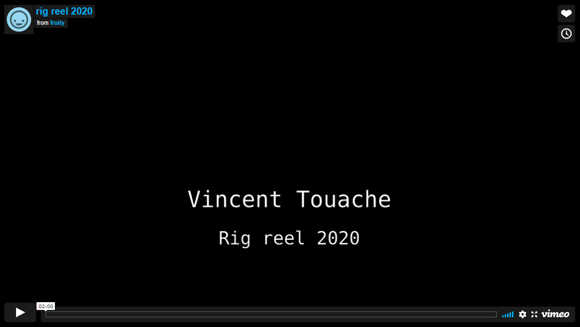 Here are my most up-to-date showreels. Please contact me (see the About page) if you need the password.