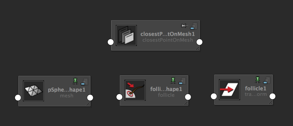 And of course, once you're done with those connections, you can get rid of the closestPointOnMesh and the driverLocator and keep only the sphere and the follicle. The two first were here just to help you setting your parameterU and parameterV on the follicleShape !