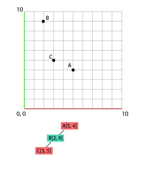 So our B point will take place on the left of A, in the tree (and on the grid as well, obviously, as we were comparing the 'x' value. But I do hope that you know how to put a point on a grid if you have its coords. ^^)!